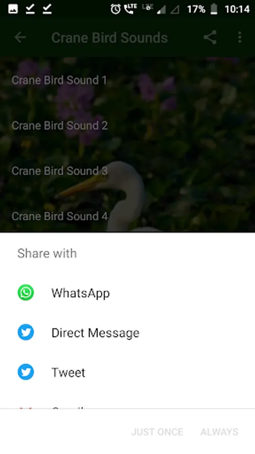 This application provides the best collection of Crane Bird Sounds for Android Devices. Sounds have been selected very carefully to be a good and fun user experience, we hope you will enjoy using the app and listening to Crane Bird Sounds.