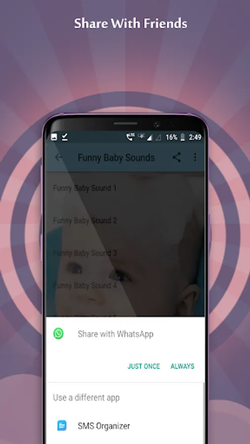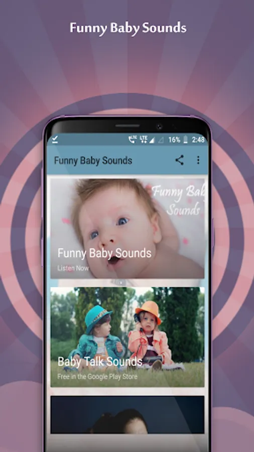 This application features the most downloaded funny baby sounds ringtones from around the net grouped together in one easy to use funny application. Simply press a button to listen to funny baby sounds. Easily save your favorite funny sound as your ringtone, notification or alarm sound. Best of all, its free!
