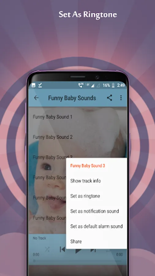 So install funny baby sounds ringtone today for your phone. Make your phone ringtone different from the other.
