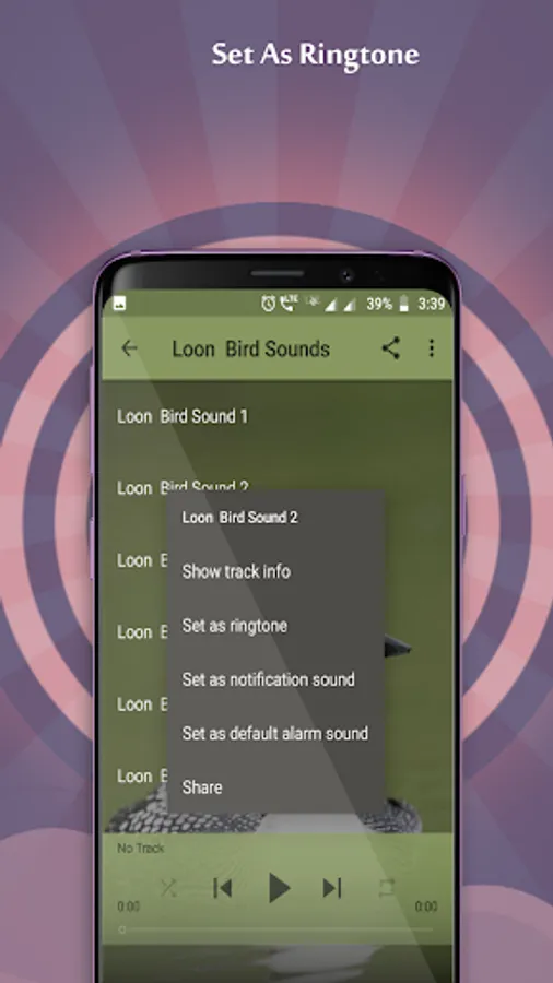 This application provides the best collection of Loon Sounds for Android Devices. Sounds have been selected very carefully to be a good and fun user experience, we hope you will enjoy using the app and listening to Loon Sounds.