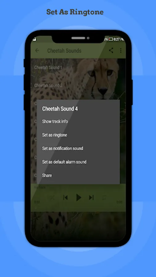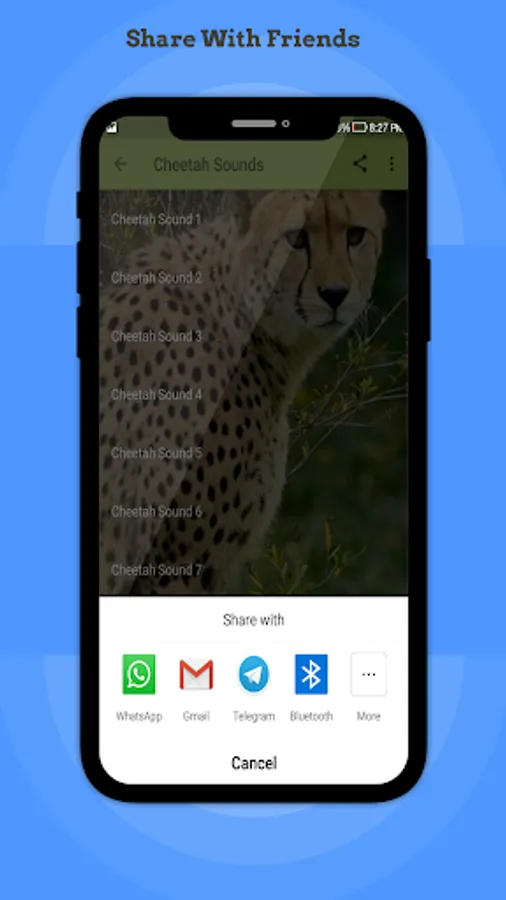 This application containing the best collection of Cheetah Sounds for Android Devices. Sounds have been selected very carefully to be a good and fun user experience, we hope you will enjoy using the app and listening to Cheetah Sounds.