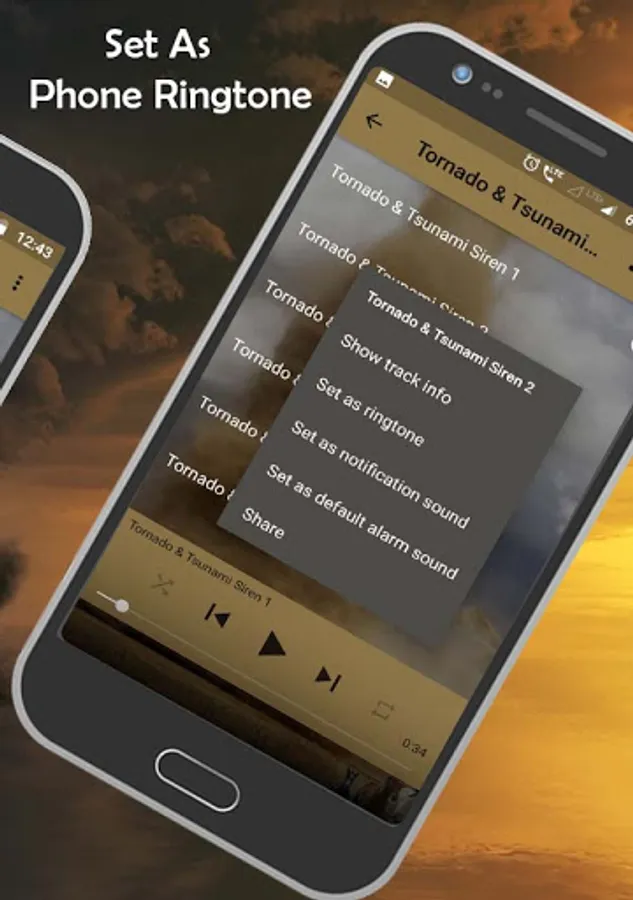 - Set as ringtone, notification and alarm tone.