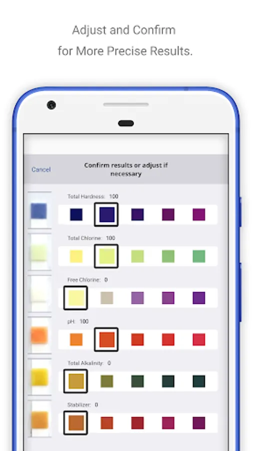 + Scan pool test strips, or manually enter liquid or test strip test results