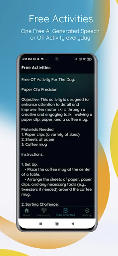 - AI generated personalized, new & refreshing occupational therapy and speech therapy activities, every single time!