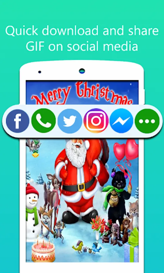 Christmas GIF App contains the best Christmas (animated Gifs) that is easy to share with friends and family in social networks. Share GIFs on whatsapp, Snap chat, face book, messenger, twitter, instagram, telegram, all or pretty much any chat or social network.