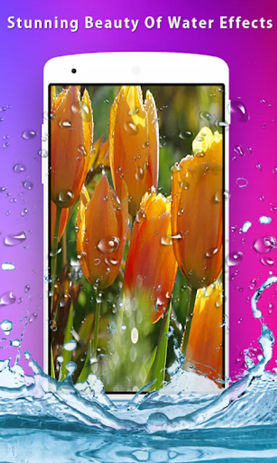 Once you set this Tulips live wallpaper, you will feel the presence of water ripples on your fingertips. It's called a ripple effect or wave effect. Just tap on your phone screen and it will turn into beautiful waves of water throughout the screen.