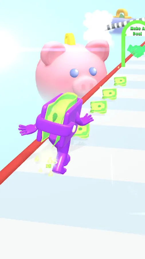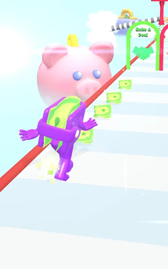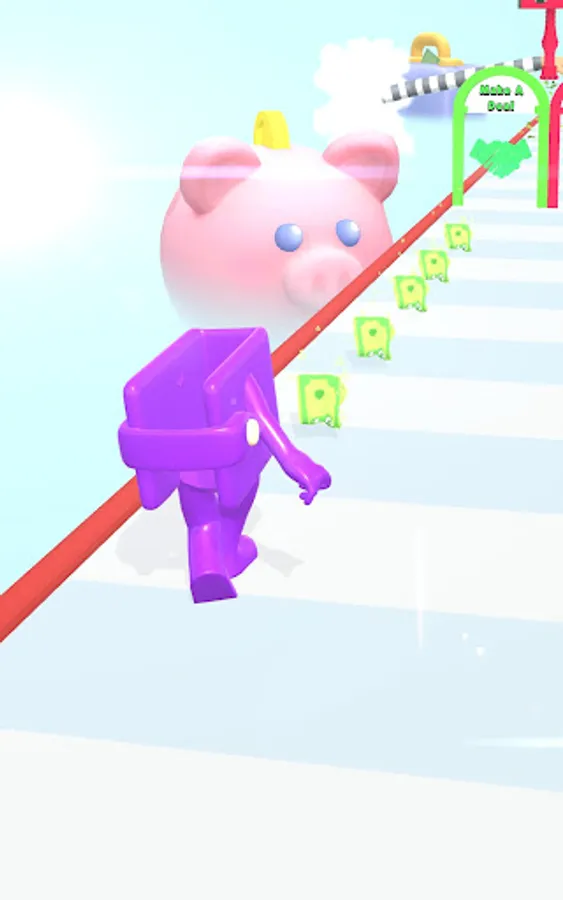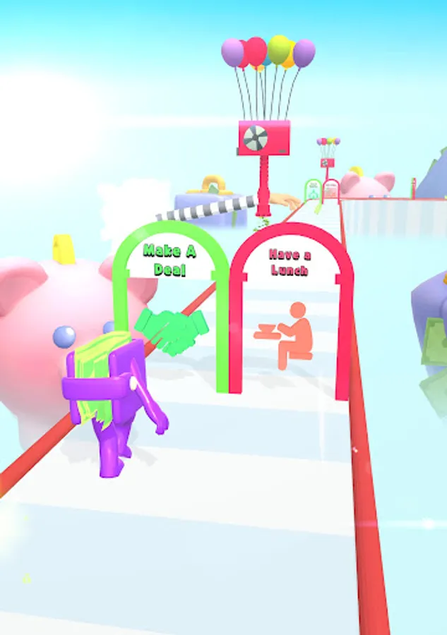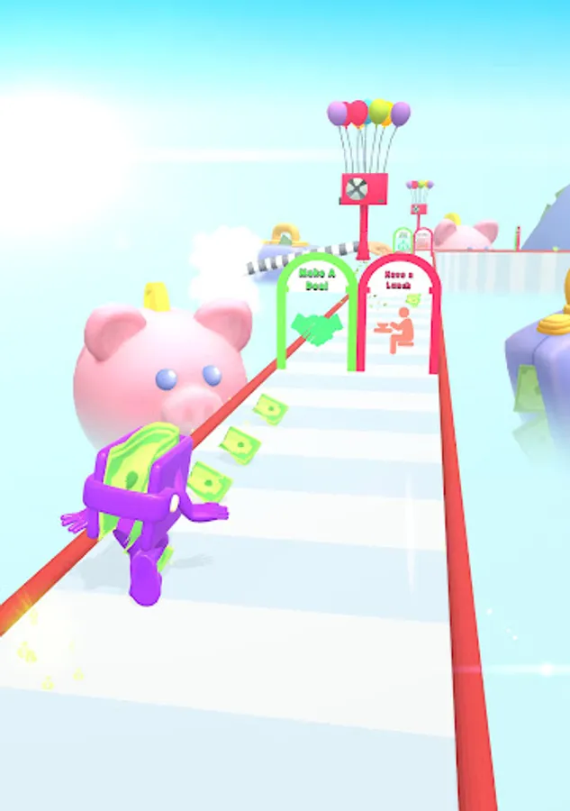 Collect money and spend them in the shop. Wallet Guy is happy when it is full with money. Run and collect money on the road. Choose right doors to increase them even more. Avoid thieves and vacuums to reach the shop with maximum amount of money.