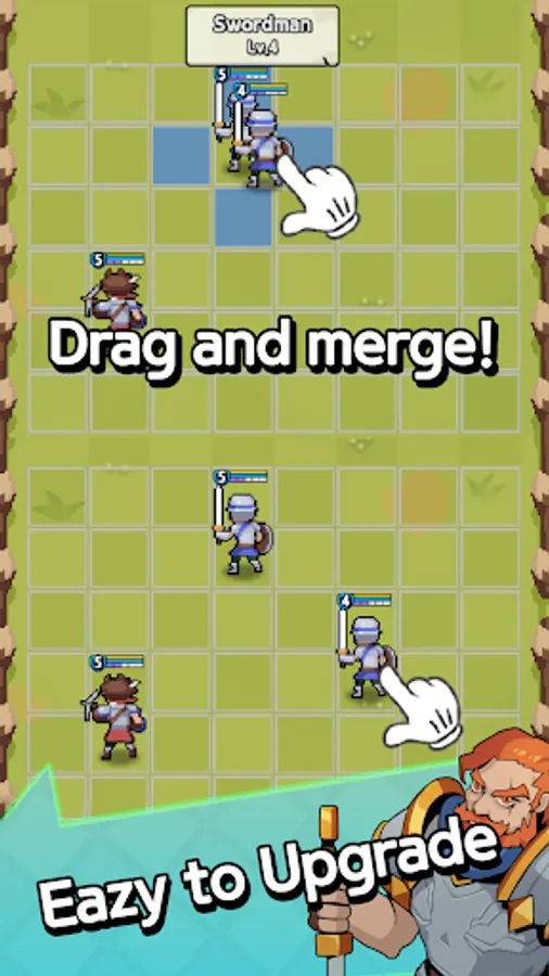 Easy Merge and Easy Upgrade to create your own epic army and defeat monsters!