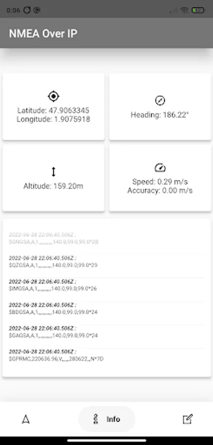 You can see all your position information in real time, even the NMEA sentences that are received.
