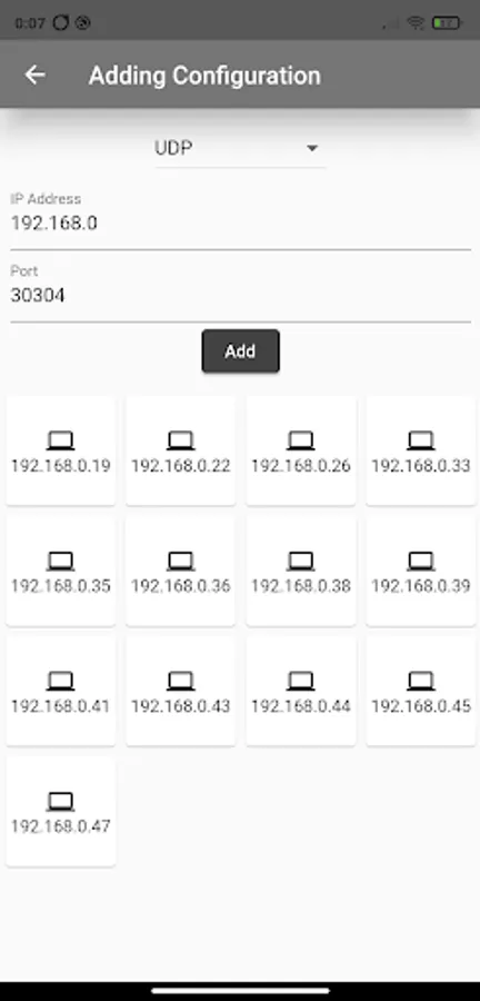 It automatically finds all available devices on the network you're connected to, and then you can simply choose which one you want to send UDP data to.