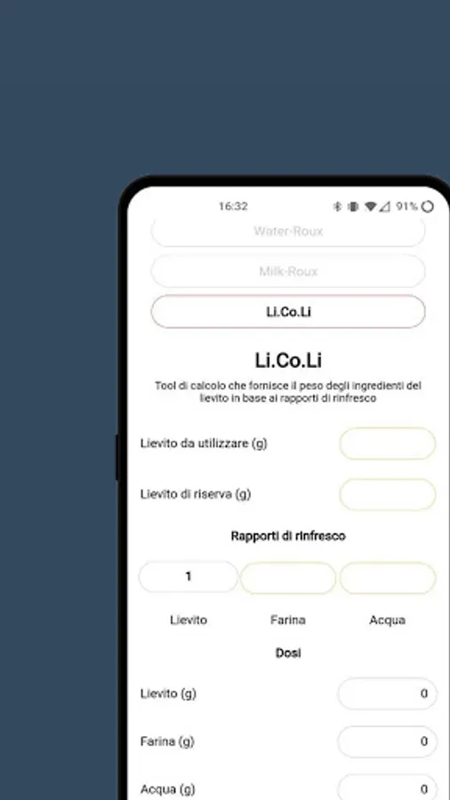 Simple tool that replaces the calculator in calculating the dosage of ingredients based on the type of dough!