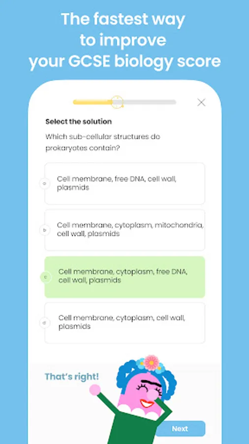 Practice for your GCSE Biology exam (AQA) with this fun, addictive app, the fastest way to improve your results. Win badges as you make progress, and get tailored feedback for every wrong answer you give, so you can learn from your mistakes!