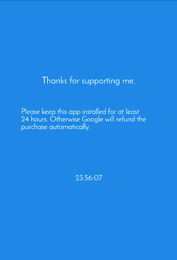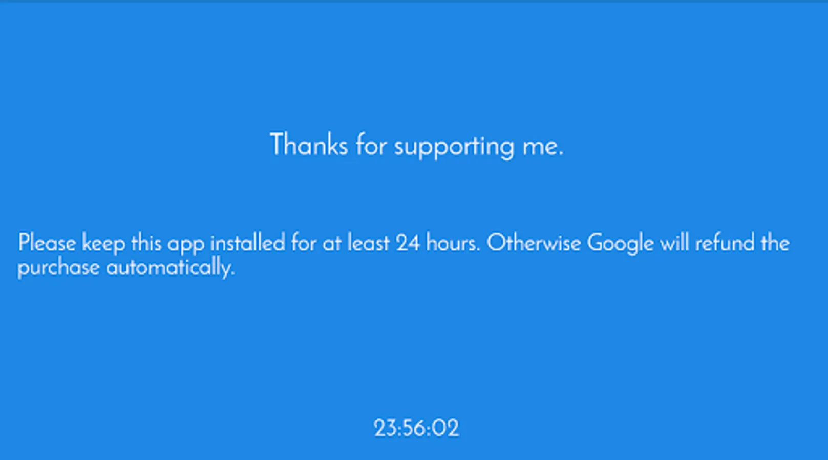 Please keep this app installed for at least 48 hours. Otherwise Google may refund the purchase automatically.