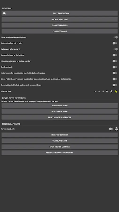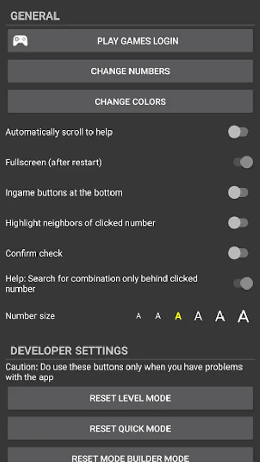 - "Help": Have a possible combination shown or get the info that there are no more number blocks that match