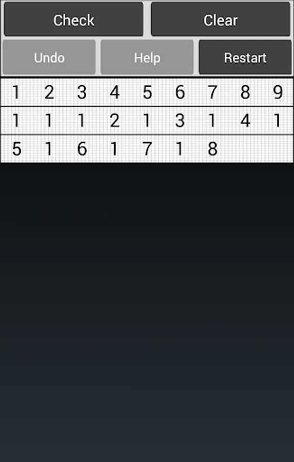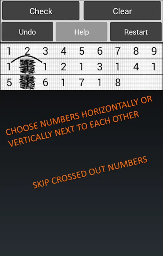 If no more numbers fit together you have to press the "Check" button and all the not crossed out numbers are written behind the remaining ones. You have to look carefully, that you do not miss any matching numbers.