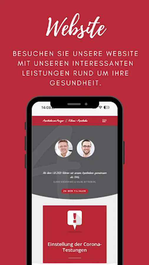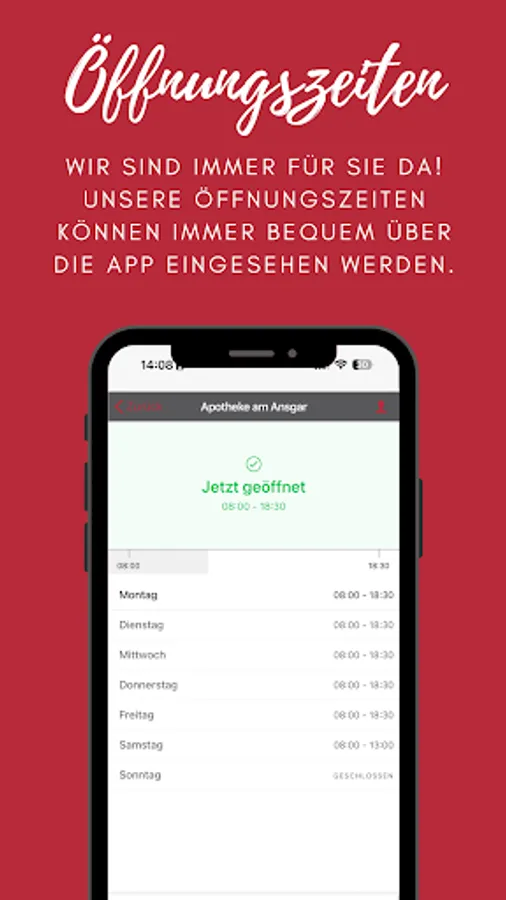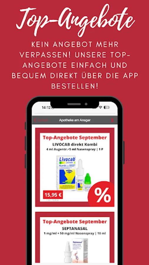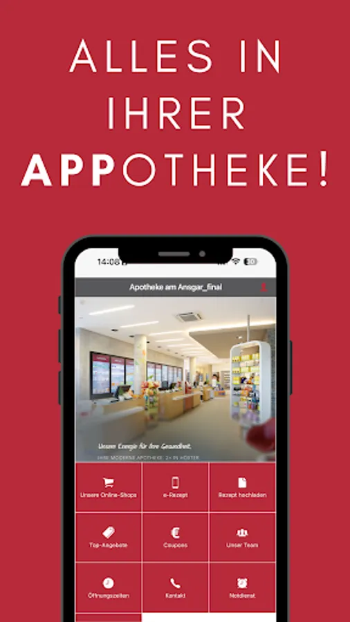 Pharmacy health app with all relevant services offered by the Apotheke am Ansgar.