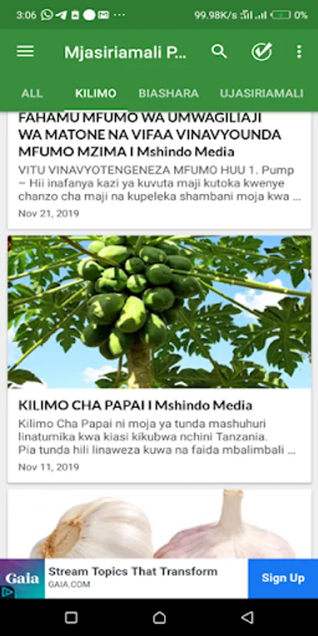 App yetu inatoa mafunzo ya Ujasiriamali katika nyanja mbalimbali kama vile Biashara, Teknolojia, Mapishi, Sanaa na Kilimo.