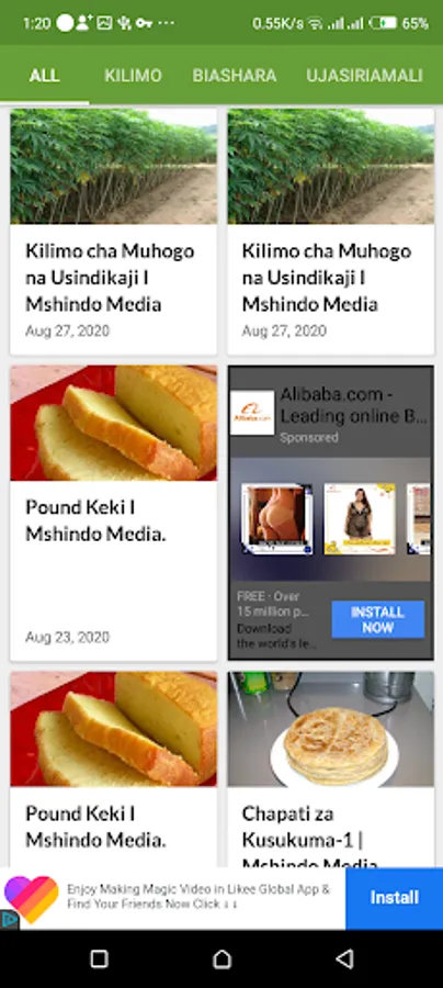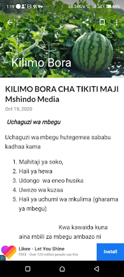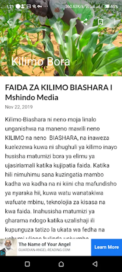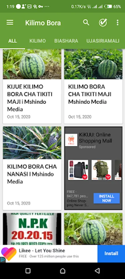 App inayo toa mafunzo ya Kilimo na Ujasiriamali katika nyanja mbalimbali kama vile Biashara, Teknolojia, Mapishi, Ufugaji, Sanaa na Kilimo.