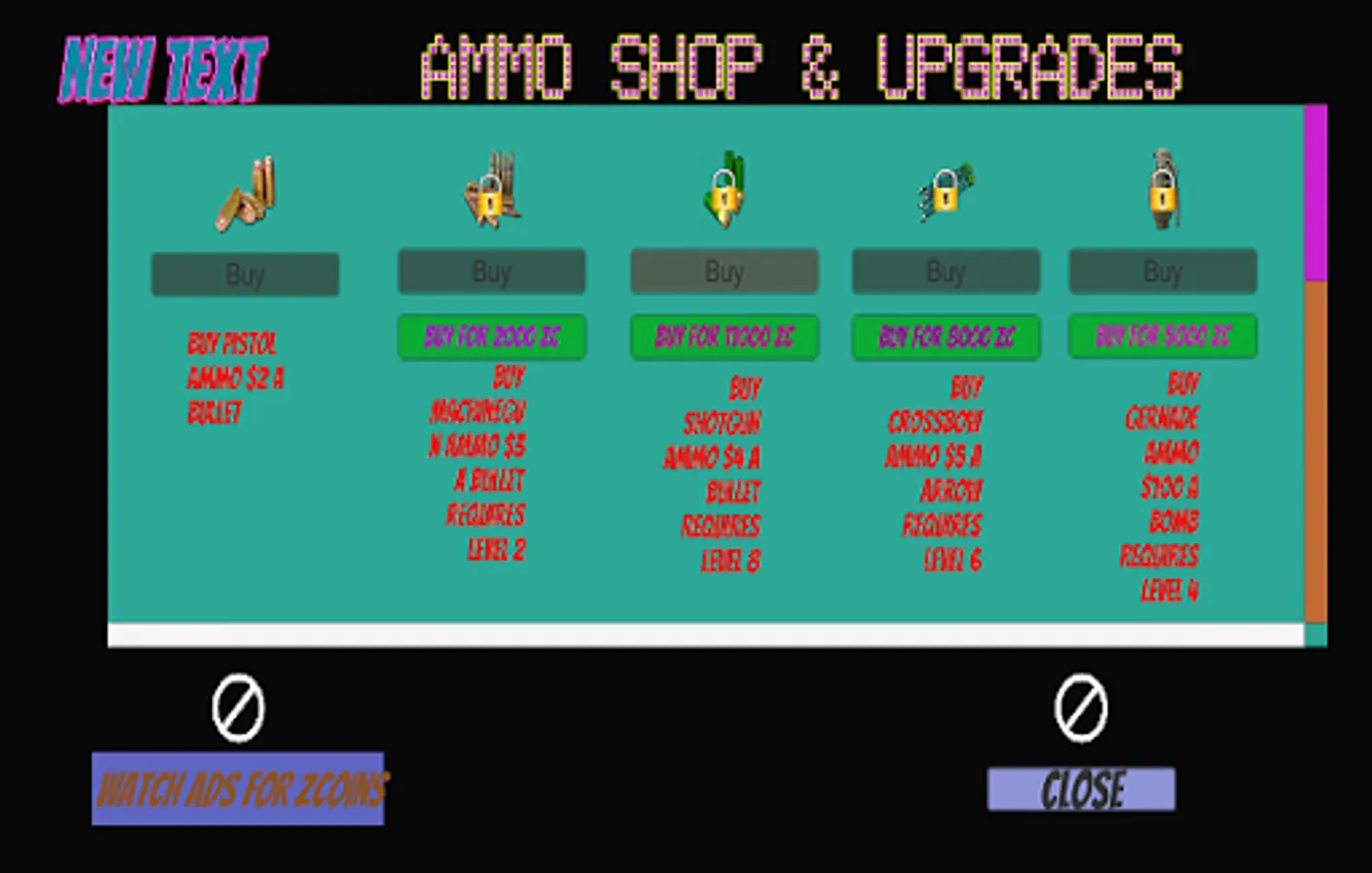 added pvp system you can attack and rob other players you can only attack one person at a time and only be attacked by one only at a time. the attacker will be emailed lose or win by email registered with.game checks when you first login so far if you been attacked you lose 10% of current money if you lost the attack to the challenger game will change depending on vars gets from sever.some days will be one types of zombies couple hours later could be diff or multi types.will gift free in game money every now and then or extra damage for weapons feature login register system money weapon stats saved to online server. game will change from server values.will add new features when created will be creating online webpage for game login and check stuff as well this will be the online stats page https://killa187420studios.com/jazg/onlinestatslogin.php anti cheat measures have been put in place in both app and online stats page anybody caught truly suspected of cheating will be banned.all weapon upgrades etc will never cost like other games buy for real cash i have ads i might get people watch ads for stuff but wont cost a thing but time.all stuff in game can be gotten by playing and will be unlocked etc and saved to online server.5 types of enemies so far 3 zombies and a spider and giant which types spawn are determined by the answers game gets back from server.weapons unlock as you gain levels or if add new one in game and you previously got to level will require. zombie coins added you can earn to unlock weapons by watching video in pause menu under ammo and upgrades