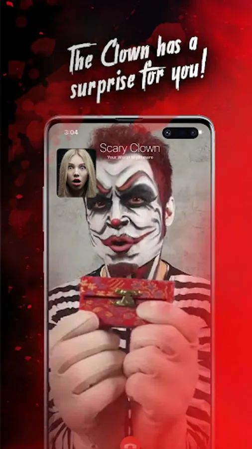 This app contains pre-recorded video calls from creepy clown performed by professional voice actor. You can now make scary jokes with just one click.