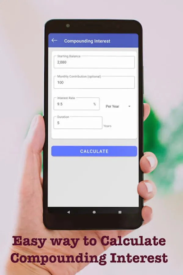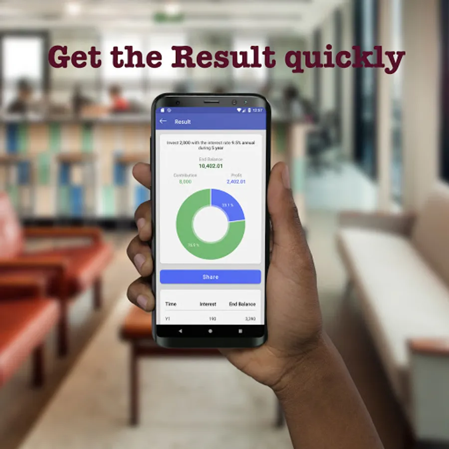 Calculate compound interest with ease. Ideal to simulate investments in savings