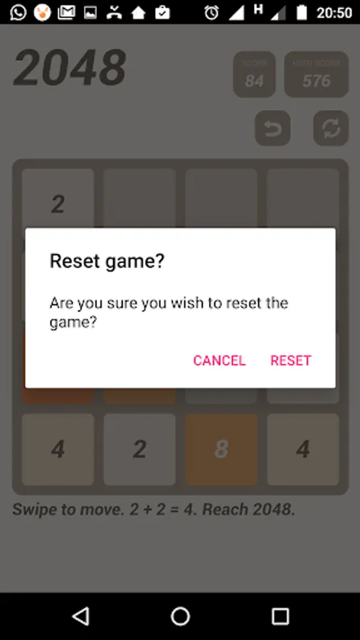 Swipe (Up, Down, Left, Right) to move the tiles. When two tiles with the same number touch, they merge into one. When 2048 tile is created, you wins!