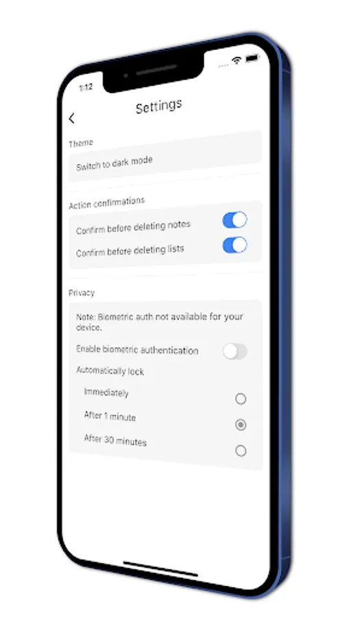 - Secure your notes using biometric authentication
