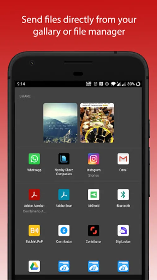 A file sharing app which can help you transfer files from your mobile device to a Windows 10 device without installing anything on you Windows 10 system.
