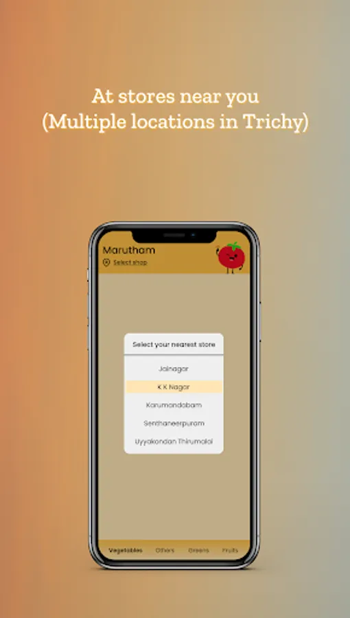 Marutham Angadi is Trichy's leading online supermarket shopping app. We offer high-quality fresh fruits & vegetables directly from our farms procured from our partner farmers. We guarantee the lowest prices and offers for fresh produce in Trichy. Download the app to check the daily offers and prices of fruits and vegetables at our retail stores in KK Nagar, Karumandabam, Ezhil Nagar, Jai Nagar, Senthaneerpuram, Uyyakondan Thirumalai and Geetha Nagar.