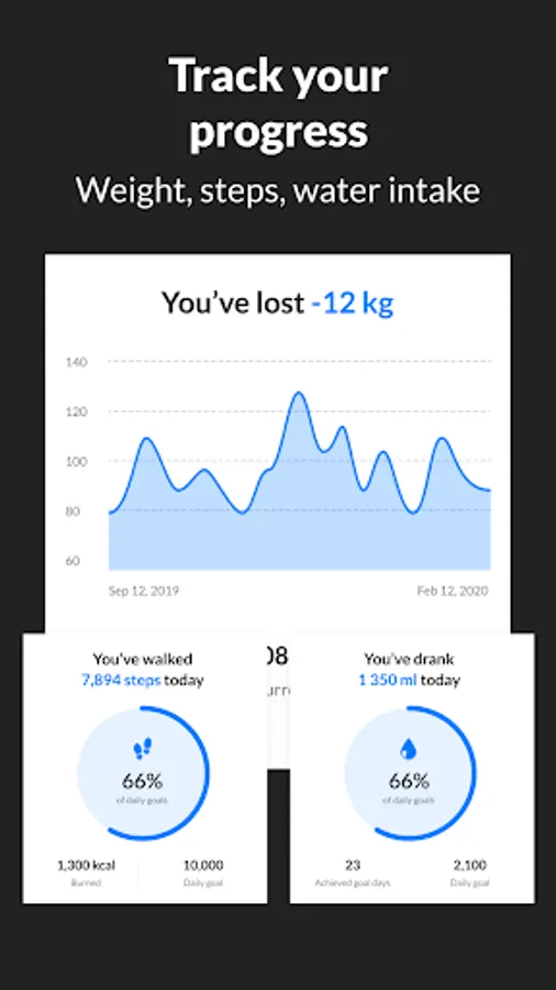 Fitter offers personalized at home workout programs for various goals – weight loss, muscle gain, getting fit, and more. Choose the perfect plan for you and join Fitter challenges to compete with other users!