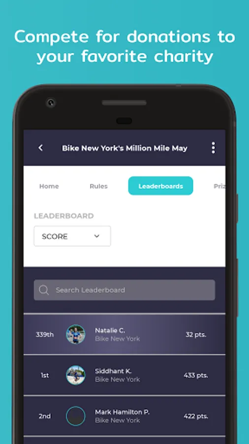 Join an event to start competing on an interactive live leaderboard where you’ll earn points based on your activities, fundraise according to your wellness goals, and earn great prizes along the way!