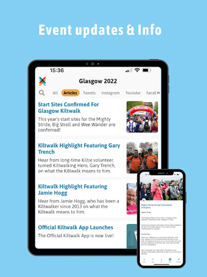 The Kiltwalk app is a 'must have' for all Kiltwalkers signed up to Kiltwalk events!