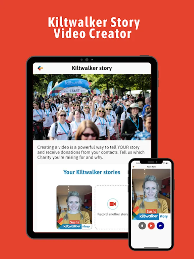 As all Kiltwalkers know, we walk to raise much needed funds for Scottish Charities and this app has been designed with fundraising at its very core. Not only does the app bring all of your personalised event and fundraising info into one place, the video creator and social sharing tools allow you to capture and share powerful fundraising stories in just a few clicks. It also features Kiltwalk rewards badges, live event location tracking, interactive course maps, Kiltwalk updates and all Kiltwalk Information you need for your Kiltwalk event.