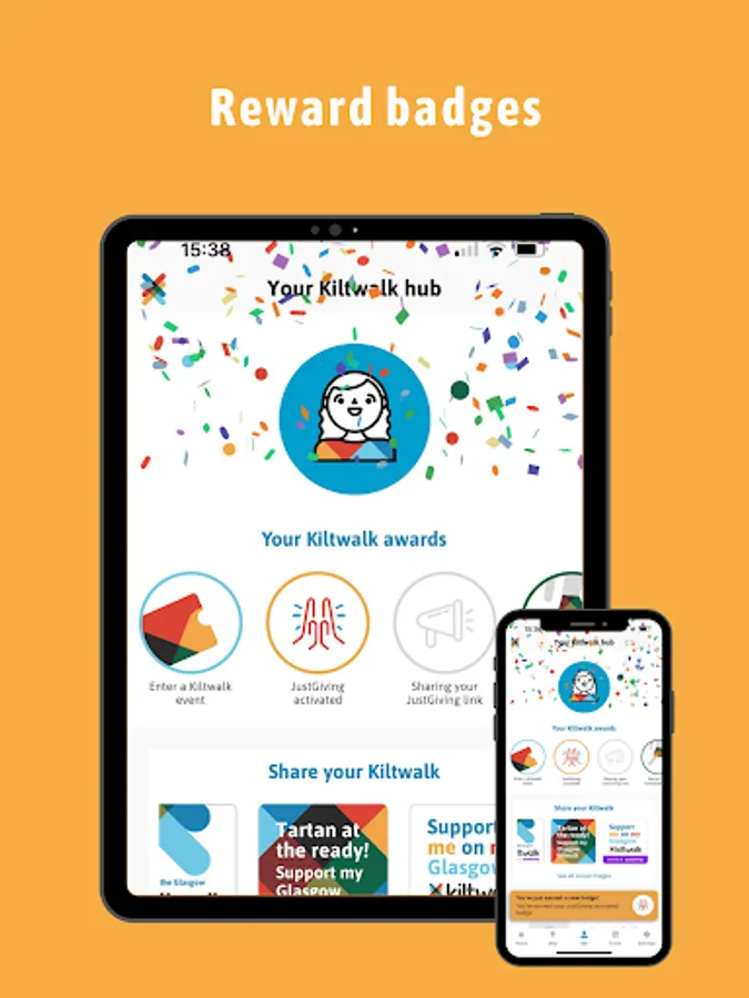 - Kiltwalk rewards - Gain badges when you hit key milestones