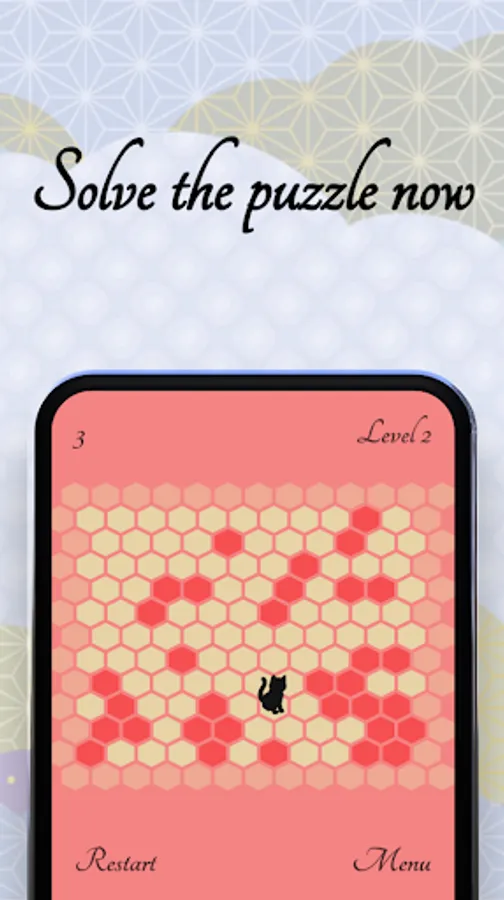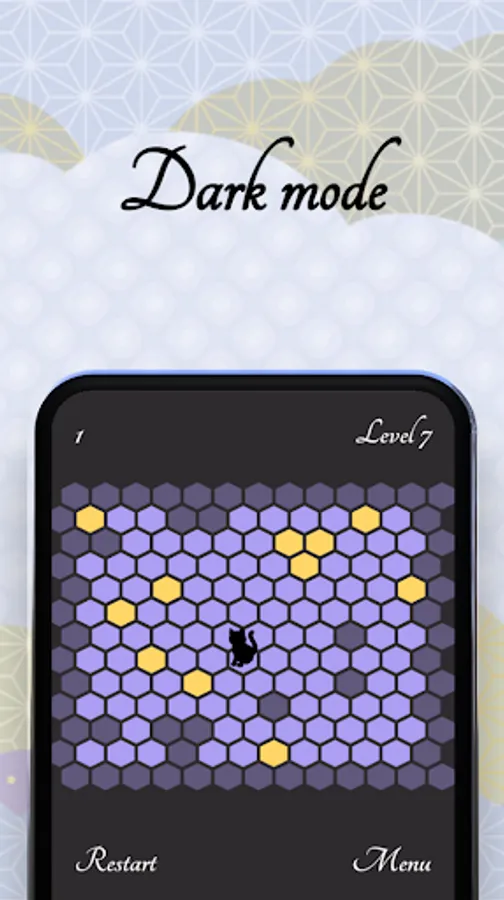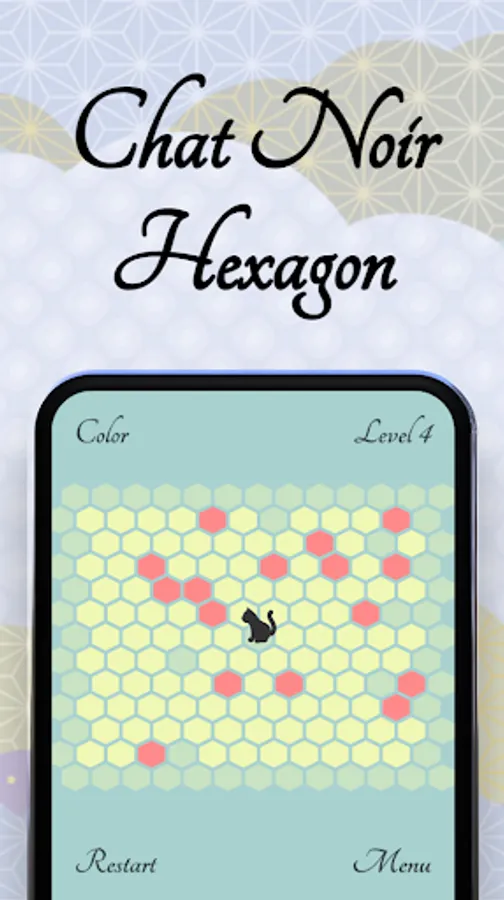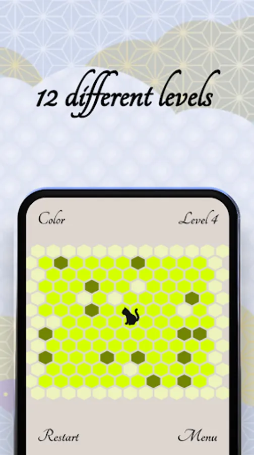 Stop the cat from escaping the screen by clicking on the bright green hexagons. Meow!