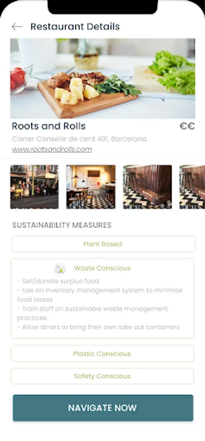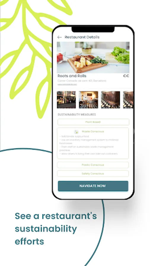- Locate nearby sustainable restaurants in seconds