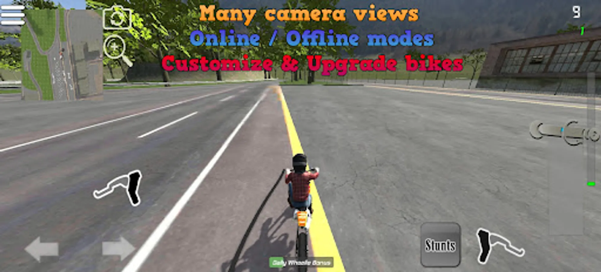 Whatβs better than playing dirt bike wheelie games and earning points for each time you do freestyle stunts? For me, itβs an absolute dream. Download this uncontrollable bike game and perform wheelie bike missions for free. Earn points when you wheelie & race. Put on your helmet and go on a wheelie drive such as city endless free ride, countryside moto challenge levels and much more. Complete moto online challenge to unlock more drives.Check your top speed and global ranking to improve your wheelie racing and become the best bike simulator. Some unique features of this game are: