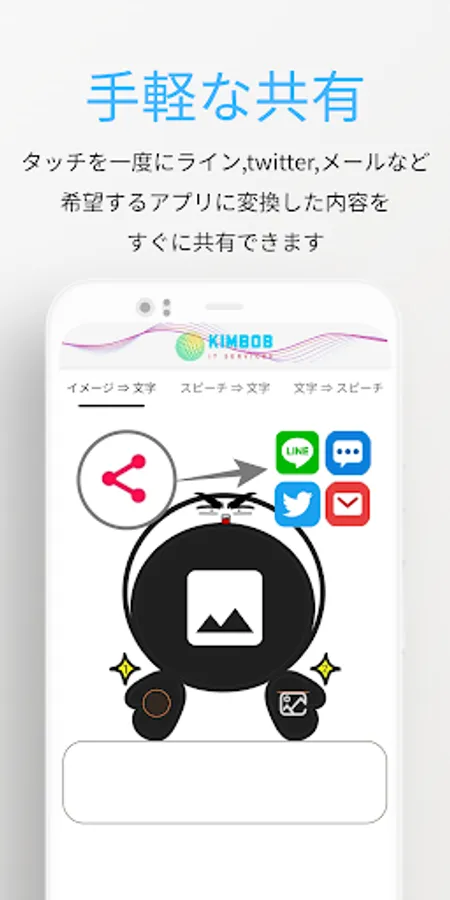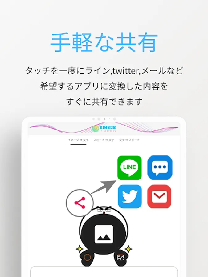 You can instantly share the contents converted to the desired application such as line, twitter, mail, etc.