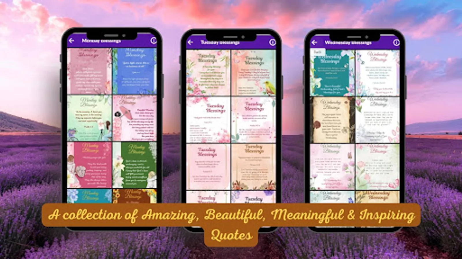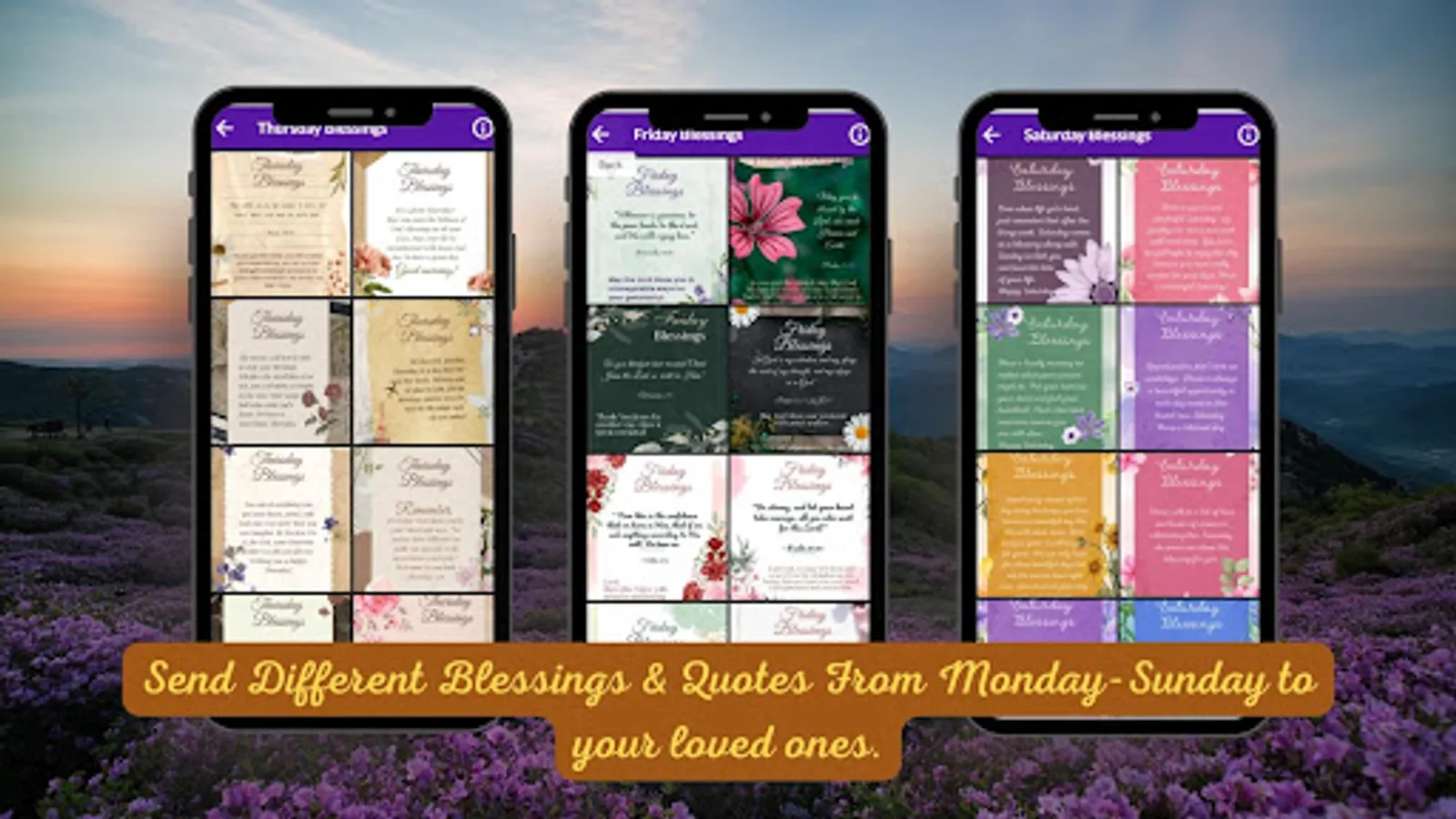 A collection of Monday to Sunday Blessings app to brighten someone's day. You can add a positive thought by sending out blessings and wishes to others.