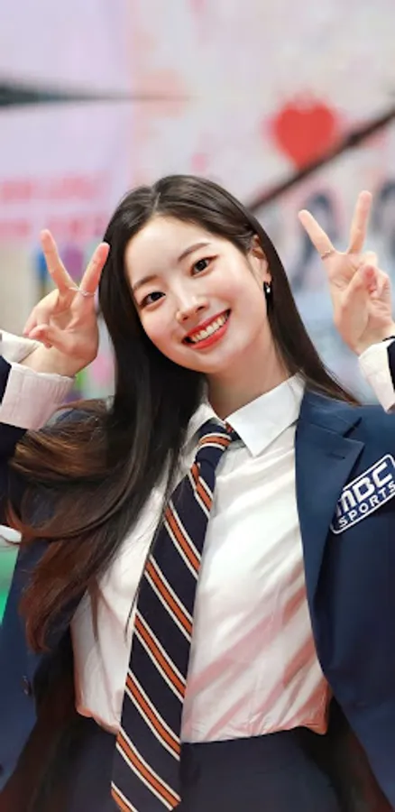 Dahyun has a cheerful and energetic appearance. He has big, expressive eyes and a cute smile. Her hair is often styled in different styles, ranging from long to short, and often in bold colors.
