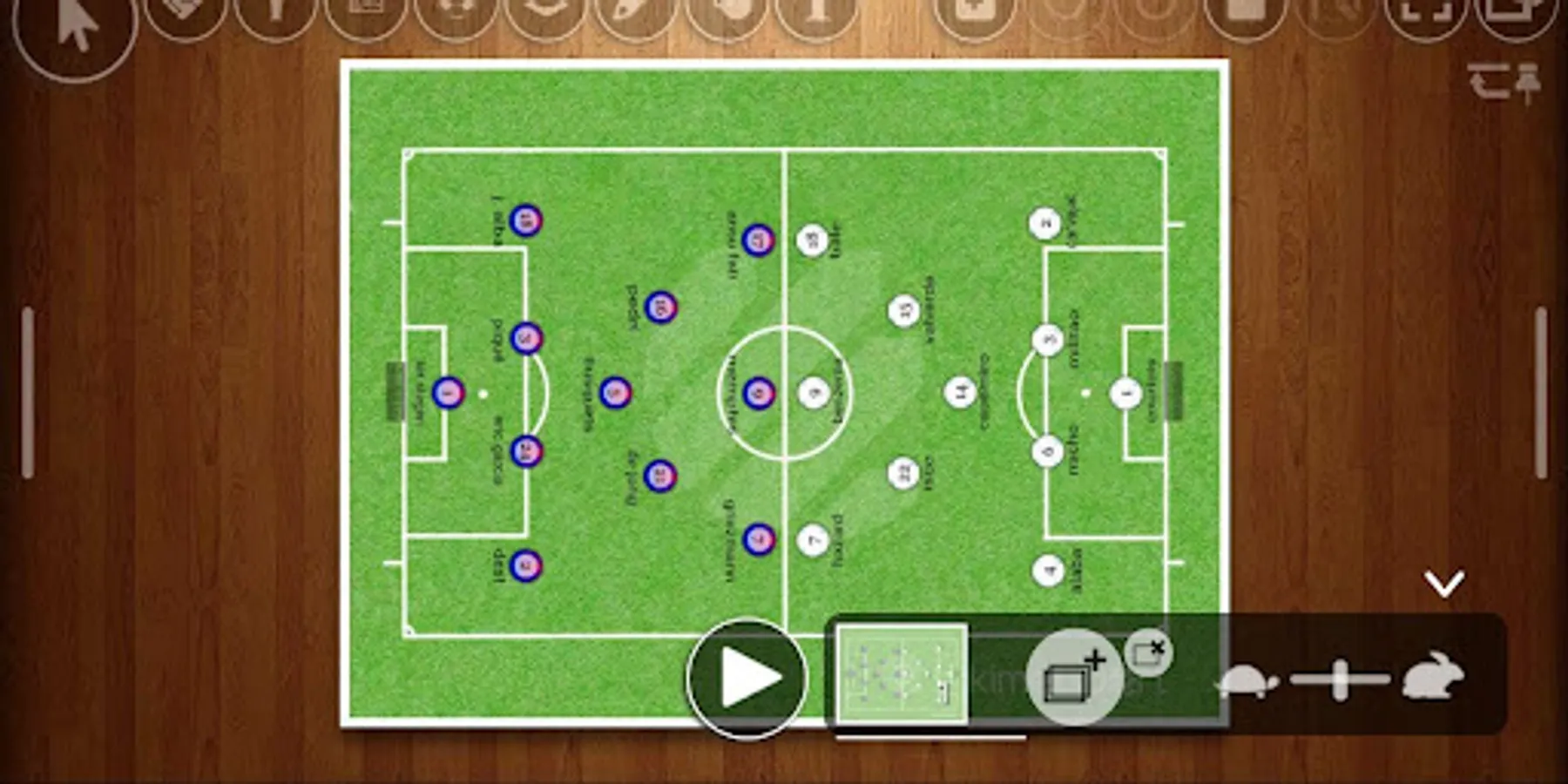 * Wide customization capacity of the board and its elements: players, objects, arrows, text... Which can be changed in size, color, shape and rotation.