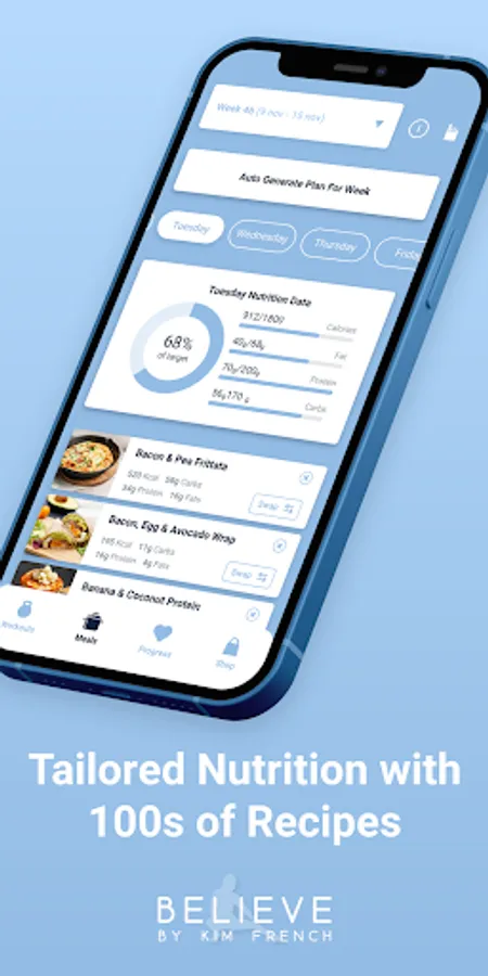 The app is carefully designed to help you succeed whether you train at home or in the gym, with a range of customisable workout plans, tailored nutrition and progress tracking capabilities. Our simple and intuitive interface will provide you with a seamless and enjoyable experience throughout your entire fitness journey.