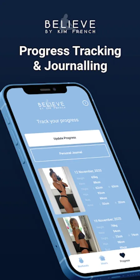 Tracking progress is an excellent way to stay motivated and we have lots of features to help you. Log your weights and reps for every exercise and use the handy exercise history button to see your PBs and exercise log. Take regular photos and measurements to keep track of your progress and create your own comparison pictures to save to your phone. Reflect on your journey and log your fitness milestones and experiences within our Journaling feature where you can also track your menstrual cycle.