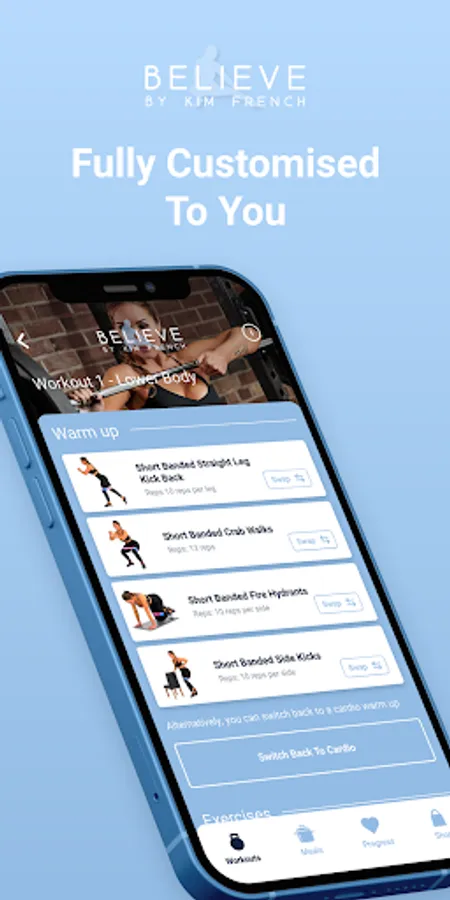 Having undergone her own fitness transformation, Kim developed a passion to help others recognise their own potential, get strong and feel more confident. The Believe App contains all of Kim’s knowledge, expertise and unique training methods including 30+ home & gym plans with many more to come. Having already changed thousands of lives from all over the world, she finally brings to you an app with everything you need, all in one place.