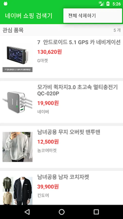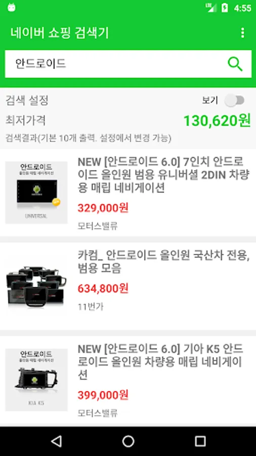1. Provides the same search results as the Naver Shopping site (excluding detailed search)
