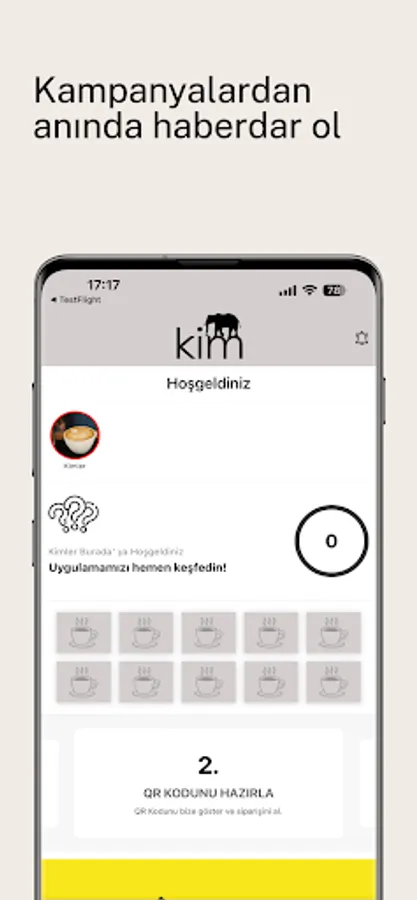 Who's Here Be aware of the campaigns with our mobile application! Don't miss the opportunity for free coffee! Sign up now, show the QR code to the barista in every order and earn points. 1 coffee for every 10 points!