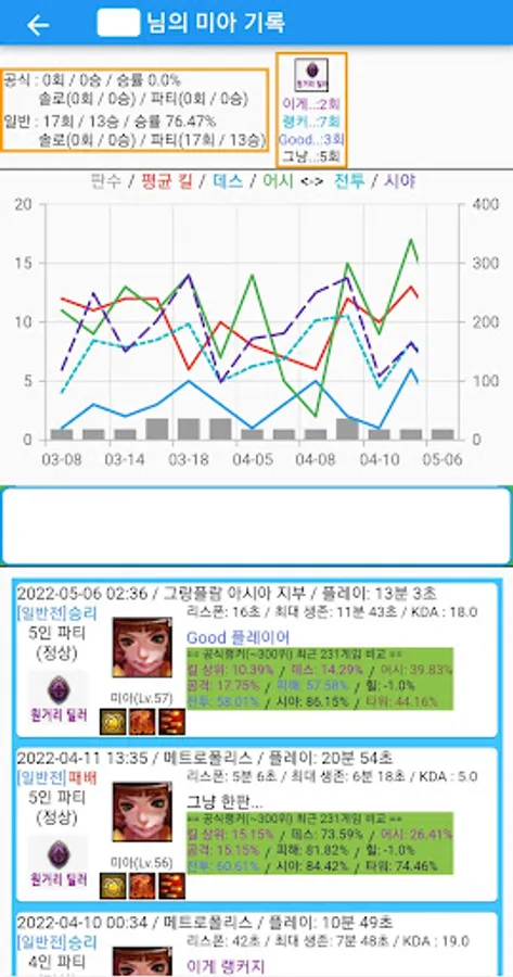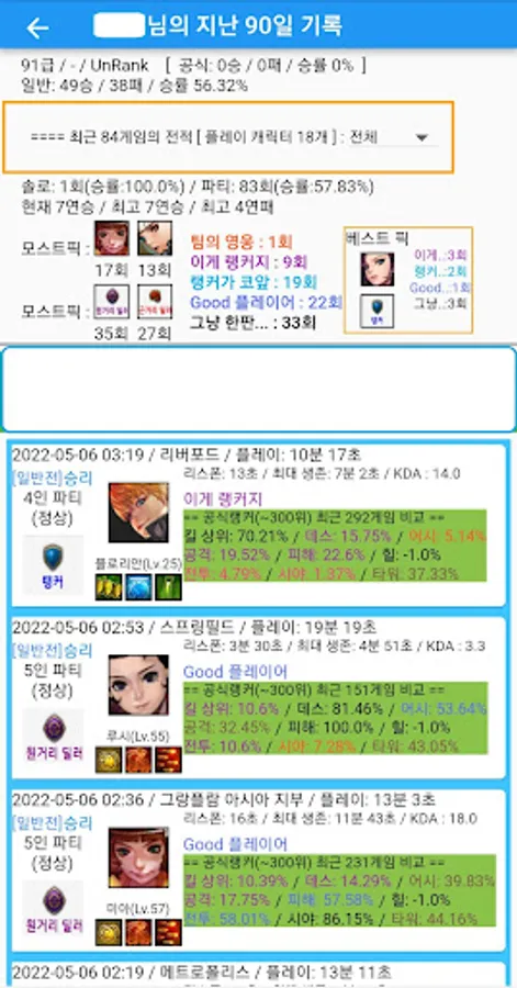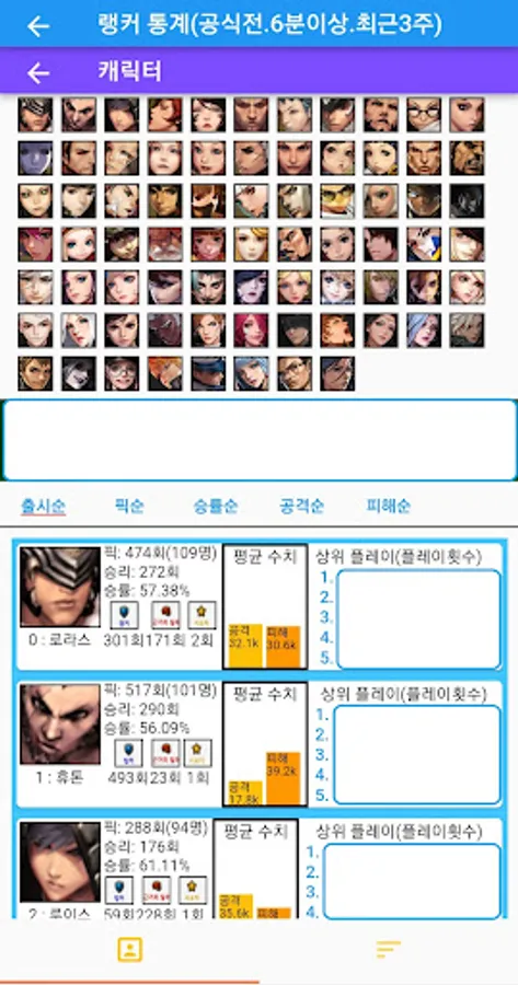 You can check recent game stats with the Cyphers nickname, and you can check the statistics for each character and the comparison value of each user's play through the recent play records of top rankers.