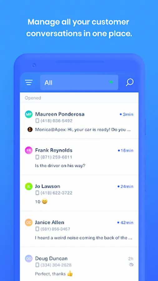 Manage all of your Kimoby conversations and customers from your Android phone.