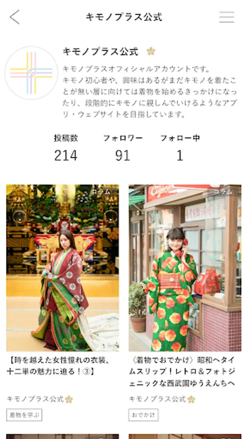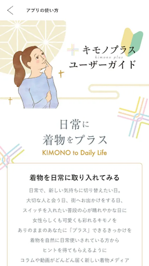 オフィシャル投稿では旬の着こなしや着物初心者さんにもわかりやすい着物のイロハをお届け。検索機能では「着物でお出かけしたい場所」や「着付け教室」など、着物にまつわる様々なスポットを用途やエリアごとに探せます。