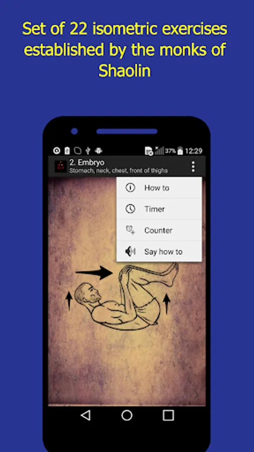 We are offering a set of 22 isometric exercises, according to the tradition established by the monks of Shaolin, which concluded in a small cage. Being in such circumstances, the monks not only not weakened, but strengthened their power and strength with the help of this complex.